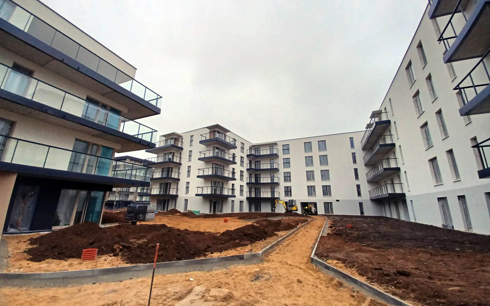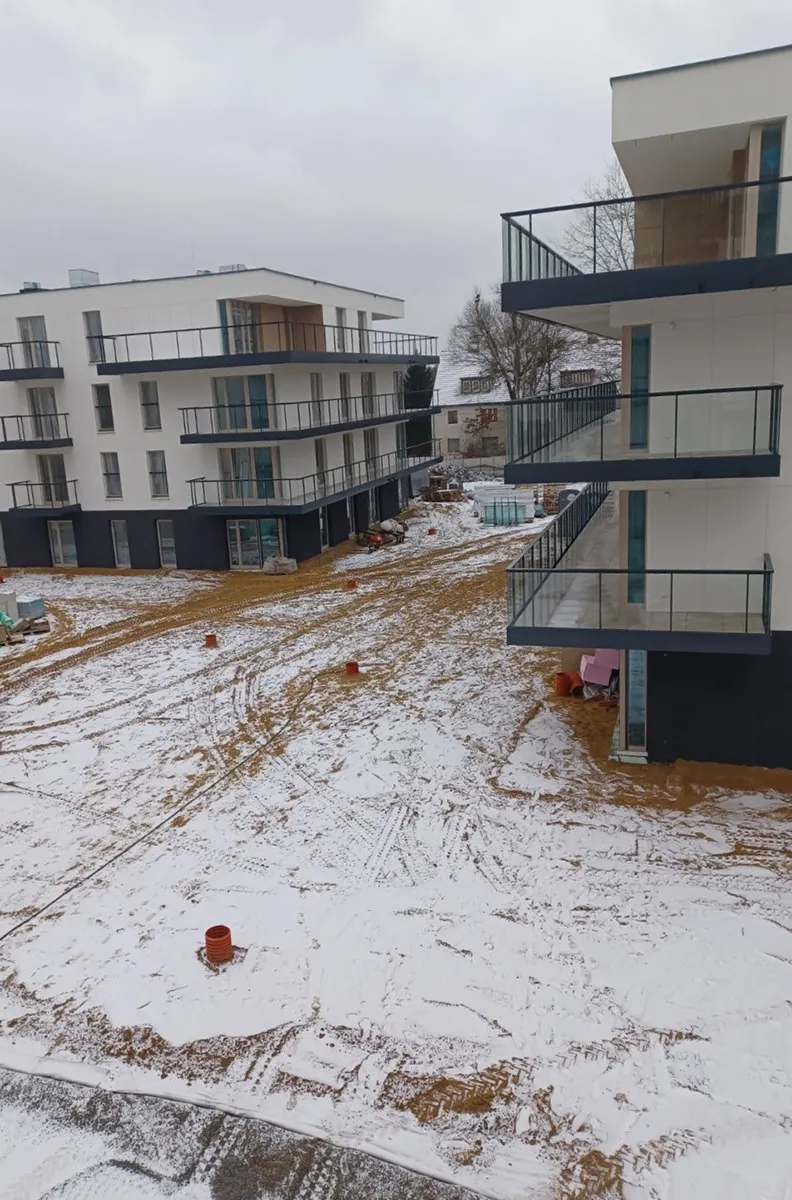 2025.12.29 - Patio przed budynkiem B5 - rozpoczęcie prac związanych z zagospodarowaniem terenu przy budynkach B11, B12 i B5